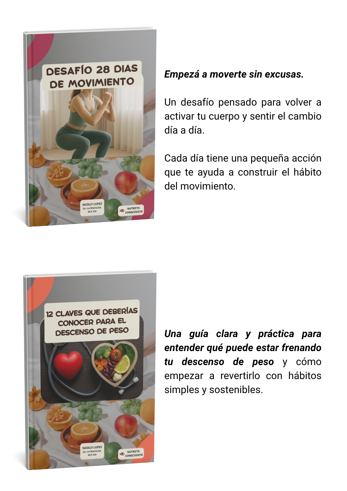 Los 10 bonos de regalo están pensados para acompañarte en todo el proceso: te brindan recetas, herramientas y tips que hacen tu cambio más fácil, completo y disfrutable, potenciando los resultados del desafío de 28 días. 🎁