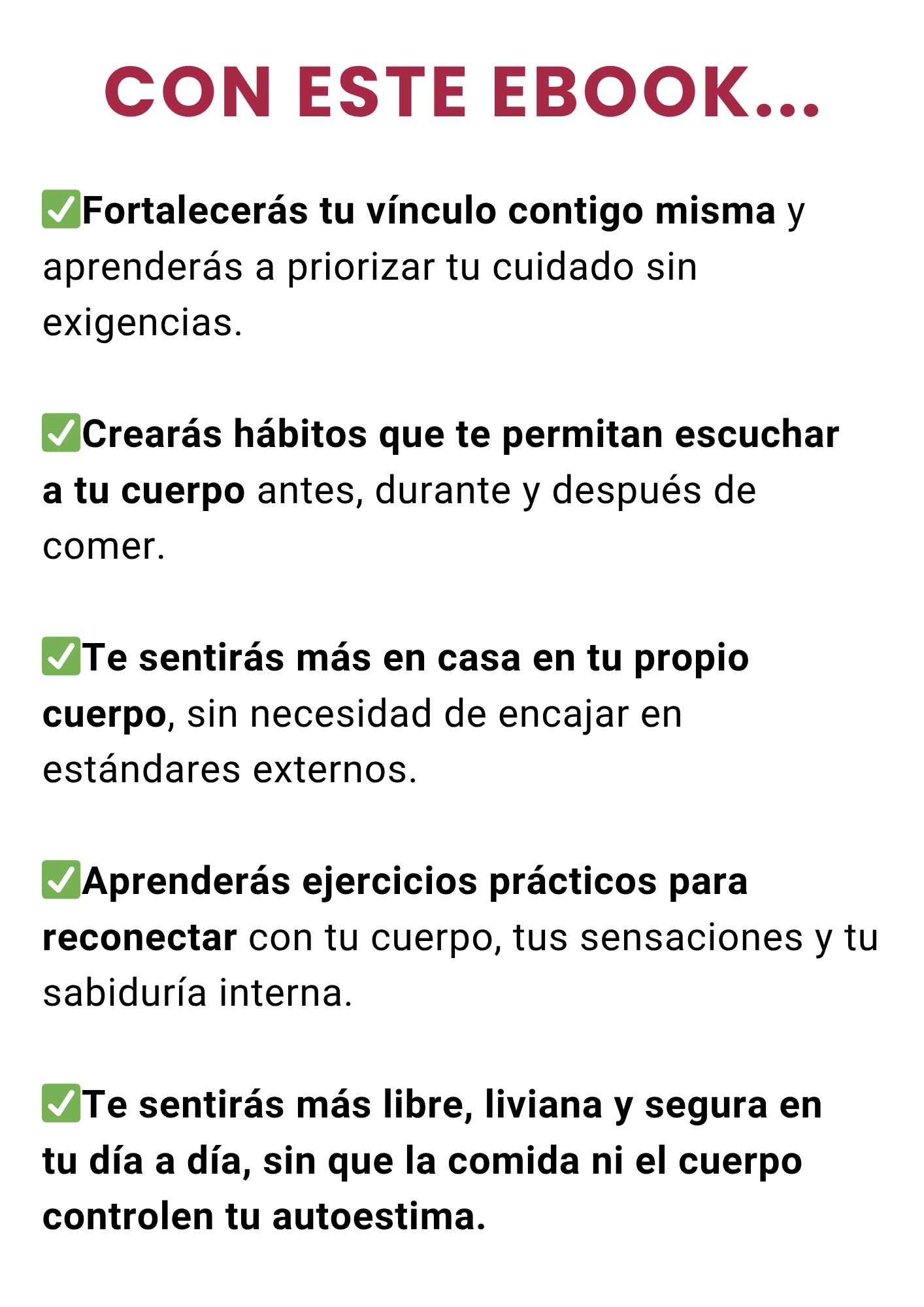 Es una guía para empezar a sanar el vínculo con tu cuerpo, transformar la forma en que te mirás y disfrutar de la comida como un acto de autocuidado y libertad. 💖